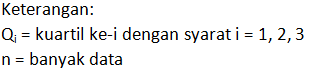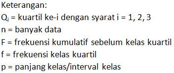 Untuk data kelompok, kuartil dapat dirumuskan sebagai berikut: