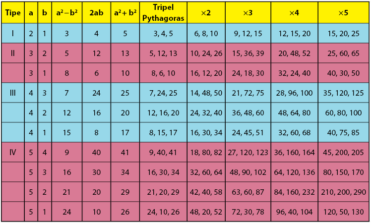Jika a dan b bilangan bulat positif dan a > b, maka tripel pythagoras dapat disusun menggunakan rumus
