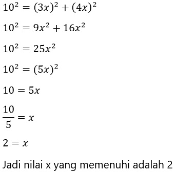 Jika 3x, 4x, 10 merupakan tripel Pythagoras, maka berapa nilai x agar memenuhi ?