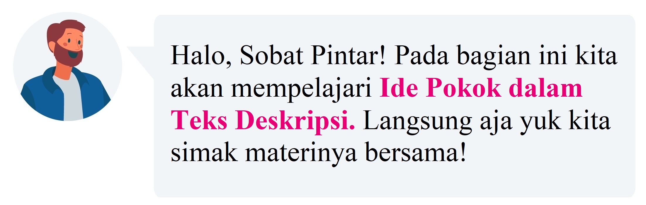 Di kelas sebelumnya, kalian telah belajar tentang teks deskripsi dan ciri- cirinya. Untuk menyegarkan ingatan, mari kita bahas kembali secara singkat. Teks deskripsi memaparkan objek atau tempat secara terperinci, berisi pemaparan atau penggambaran yang detail sehingga seolah-olah pembaca dapat membayangkan objek atau tempat yang digambarkan dalam teks tersebut.