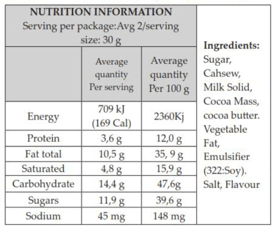 Perhatikan informasi yang ada pada kolom 3 baris terakhir. Dari informasi tersebut kita dapat melihat bahwa jumlah sodium yang terkandung dalam jumlah per 100 g adalah 148 mg.
