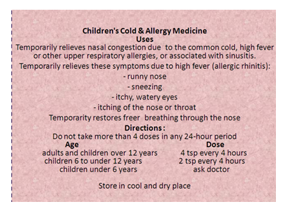Di label produk biasanya terdapat kalimat yang menunjukkan keunggulan produk, petunjuk penggunaan, komposisi produk, serta indikasi. Food label berfungsi memberitahukan kepada pemakai tentang makanan yang telah dibeli.