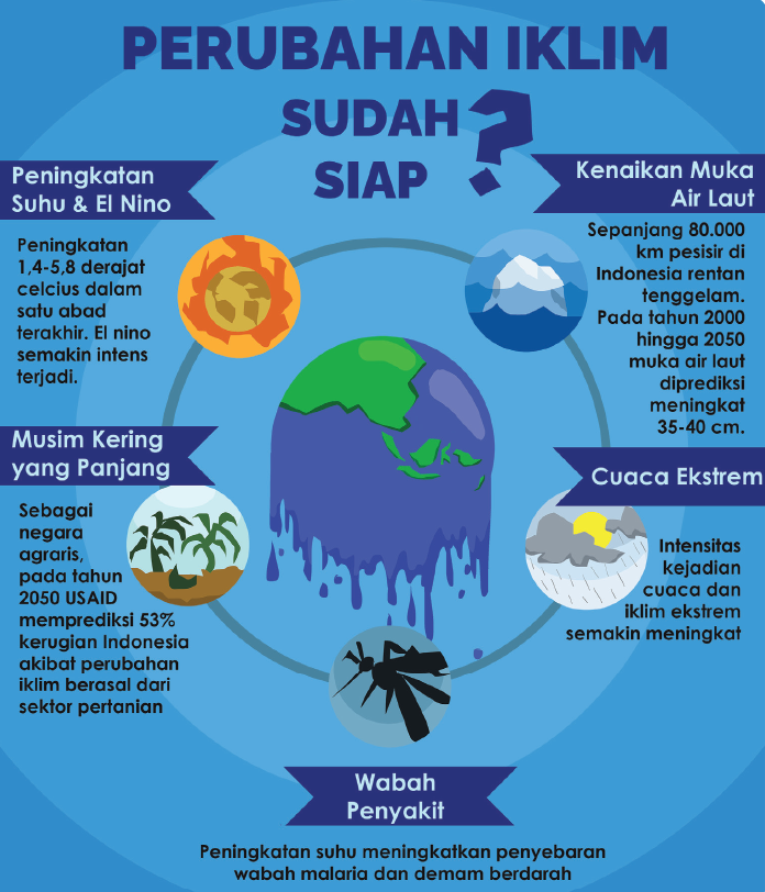 Pemanasan global menyebabkan perubahan iklim yang dapat mengakibatkan peningkatan kejadian bencana alam seperti banjir dan kekeringan.