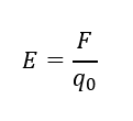 Kuat medan listrik (E) adalah besarnya gaya listrik (F) yang bekerja pada muatan uji positif (q0) yang ditempatkan dalam medan listrik. Kuat medan listrik dapat dihitung dengan rumus: