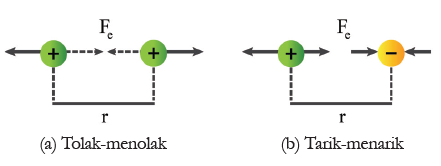 - Benda bermuatan positif dan benda bermuatan positif akan saling tolak menolak.