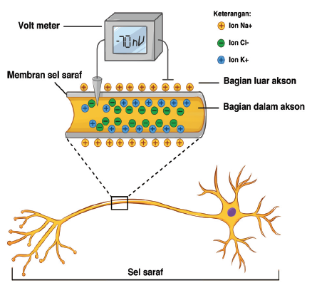 Neuron menghasilkan beda potensial yang memungkinkan transmisi impuls listrik. Sel saraf berselubung myelin dapat mengirimkan sinyal dengan lebih cepat daripada yang tidak berselubung.