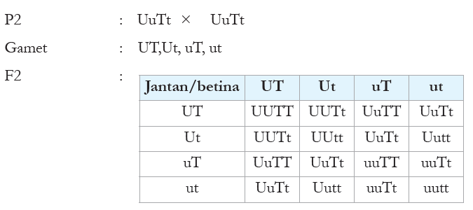 Dalam persilangan dihibrid antara individu heterozigot untuk kedua sifat yang diamati, perbandingan fenotip yang diharapkan pada generasi kedua (F2) adalah 9:3:3:1. Ini mengikuti hukum Mendel II atau hukum asortasi.