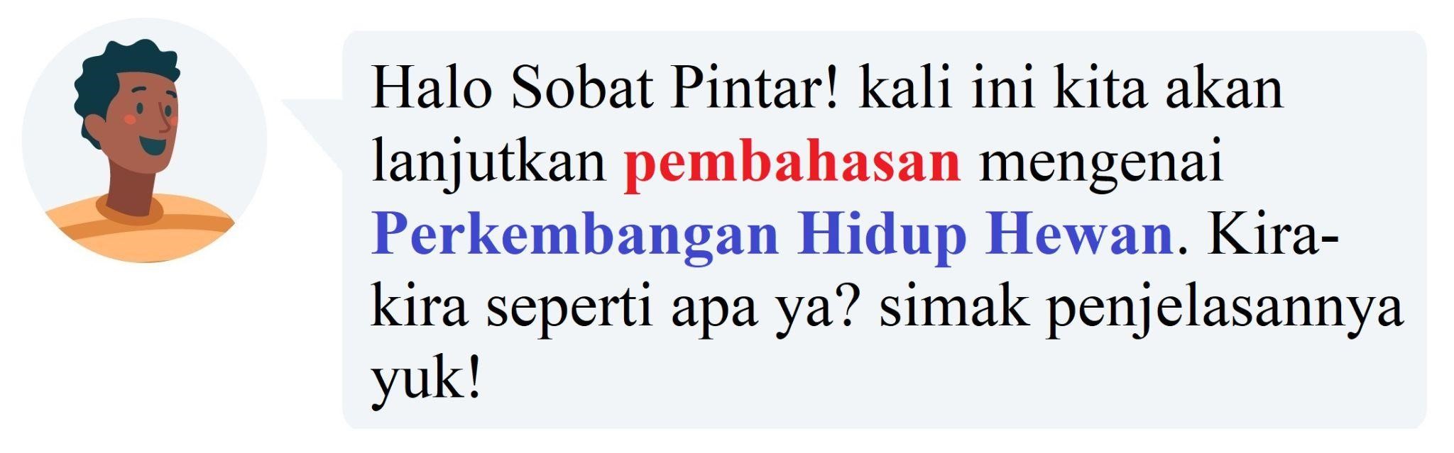 Setiap hewan memiliki tahap perkembangan hidup yang dimulai dari perkembangan embrio, proses kelahiran, perkembangan menuju kedewasaan, berkembang biak, dan mengalami kematian.