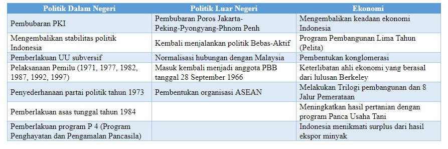 Kebijakan dalam pelaksanaan orde baru sebagai berikut.