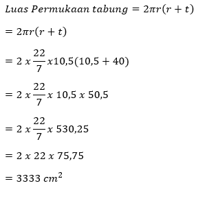 Sebuah tabung memiliki diameter 21 cm dan volume 13.860 cm3. Tentukan luas permukaan tabung tersebut!