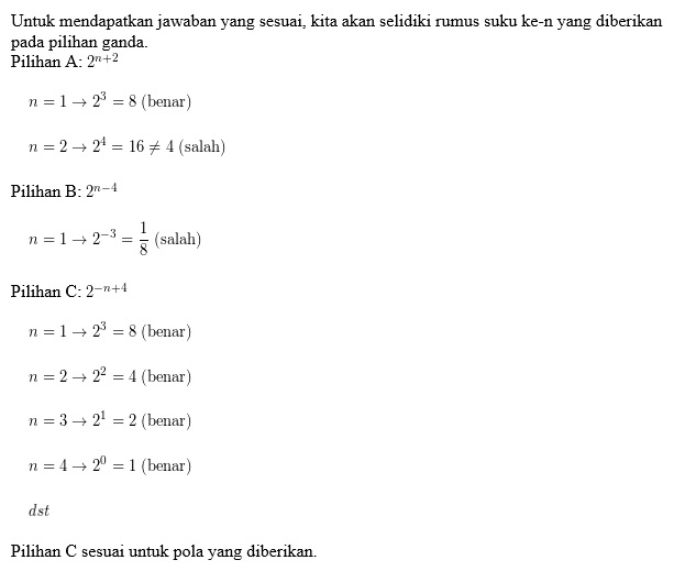 Diketahui barisan bilangan 8, 4, 2, 1, …
