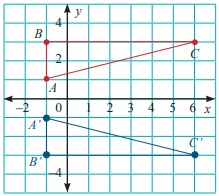 Perhatikan bahwa titik A berada 1 satuan di atas sumbu-x, maka bayangannya adalah A’ yang terletak 1 satuan di bawah sumbu-x. Sedangkan titik B dan C berada pada 3 satuan di atas sumbu-x, maka banyangannya adalah B’ dan C’ yang terletak 3 satuan di bawah sumbu-x. Dengan demikian diperoleh koordinat masing-masing titik dan bayangannya adalah sebagai berikut: