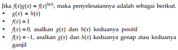 Untuk menentukan penyelesaian persamaan eksponen, sebaiknya sobat pintar mengingat kembali sifat-sifat fungsi yang telah dipelajari di Kelas X. Jika
