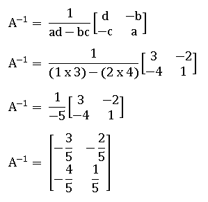 Terlebih dahulu tentukan invers matrik A: