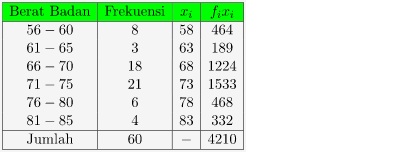 rata-rata berat badan 60 orang ibu-ibu tersebut adalah ....