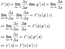 f(f u) = un, f '(u) = nun – 1 sehingga y'(x) = nun – 1 u'(x).
