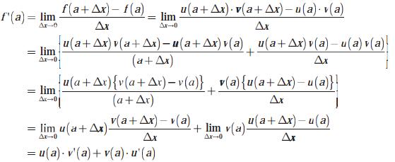 Oleh karena itu, jika y = f(x) = u(x) · v(x) dengan a bilangan real sebarang berlaku f '(a) = u(a) · v'(a) + v(a) · u'(a).