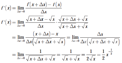 Misalkan, fungsi f(x) = x1/2, maka turunan fungsi f(x) adalah