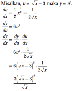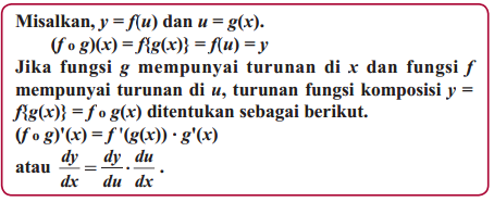 Diketahui y = f(u) dengan f(u) = un dan u = g(x). Jika fungsi u = g(x) dapat diturunkan di x = a, untuk a bilangan real maka