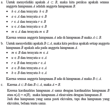 c. Perhatikan anggota himpunan A dan B, kesimpulan apa yang bisa kamu temukan?