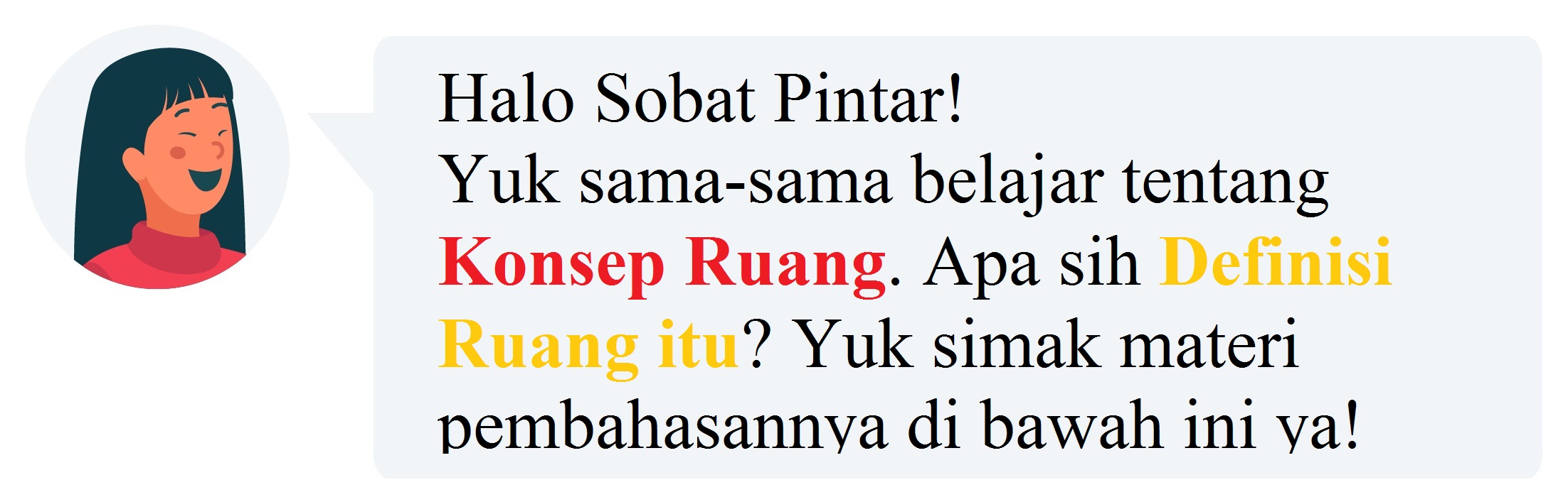 Biasanya kalian pasti familiar kan sama Ruang Kelas, Ruang Guru, Ruang Kepala Sekolah. Nah, itu juga termasuk ruang. Ruang juga bisa lebih luas loh jika berada pada permukaan bumi. Bisa berupa dataran rendah, dataran tinggi, pegunungan, dll.