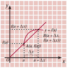 Amati gambar tersebut, misalkan A adalah suatu titik tetap pada grafik y = f(x) dan B adalah sebuah titik berdekatan yang dapat dipindah-pindahkan sepanjang grafik y = f(x). Misalkan, titik A berkoordinat (a, f(a)) maka titik B berkoordinat (a + x, f(a +