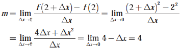 Jadi, gradien garis singgung kurva f(x) = x2 di titik dengan absis x = 2 adalah m = 4.