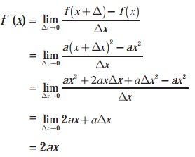 Untuk n = 2, diperoleh f (x) = ax2 dan turunan fungsi tersebut adalah