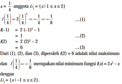 Tentukan nilai maksimum dan minimum f(x) = 2x2 – x, untuk