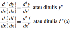 Fungsi turunan dari turunan pertama dinamakan fungsi turunan kedua yang dinotasikan dengan