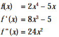 Tentukan turunan kedua untuk fungsi f(x) = 2x4 – 5x