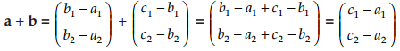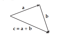 Dalam cara ini, titik pangkal vektor b berimpit ruas dengan titik ujung vektor a. Jumlah vektor a dan b didapat dengan menarik ruas garis dari titik pangkal vektor a ke titik ujung vektor b. Ruas garis ini diwakili oleh vektor c. Akibatnya, a +b = c.