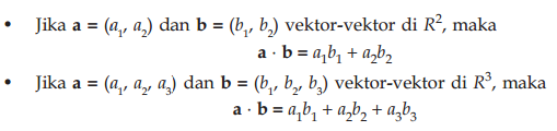 sudut di antara vektor a dan b, maka perkalian skalar vektor a dan b didefinisikan oleh a . b = |a | |b| cos