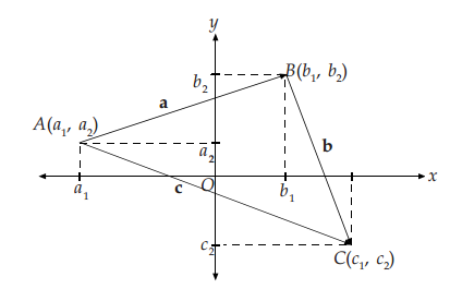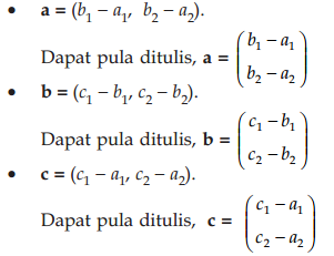 Pada gambar tersebut, vektor a, b, dan c dapat kalian tulis sebagai berikut.