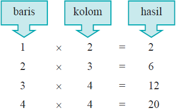 Aturannya adalah bilangan yang menunjukkan kolom nilainya selalu satu lebih banyak dari bilangan yang menunjukkan baris