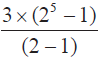 Deret bilangan tersebut termasuk ke dalam deret geometri. Suku pertama dari deret tersebut adalah 3, dan rasionya adalah 2. Jika jumlah n suku pertama dinotasikan dengan Sn, maka S5 dari deret diatas adalah: