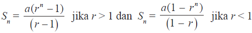 Secara umum jumlah n suku pertama pada barisan geometri adalah:
