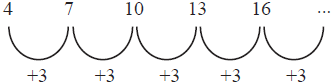 Terlihat bahwa selisih antara dua suku berurutan adalah 3, atau bisa dituiskan sebagai berikut