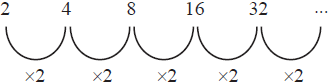 Terlihat bahwa perbandingan antara dua suku berurutan adalah 2, atau bisa dituiskan sebagai berikut: