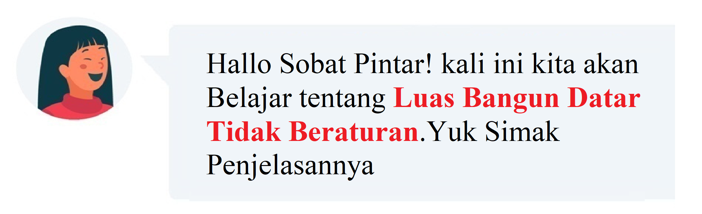 Bangun datar tak beraturan merupakan benda-benda nyata yang ada dalam kehidupan sehari-hari, seperti daun, batang pohon, penghapus pulpel, telapak tangan dan lain-lain serta suatu gambar bidang datar tidak beraturan. Benda-benda tersebut dapat diketahui luas permukaannya dengan menggunakan konsep mencari luas pada bangun datar segiempat dan segitiga. Contohnya adalah kasus masalah berikut ini.