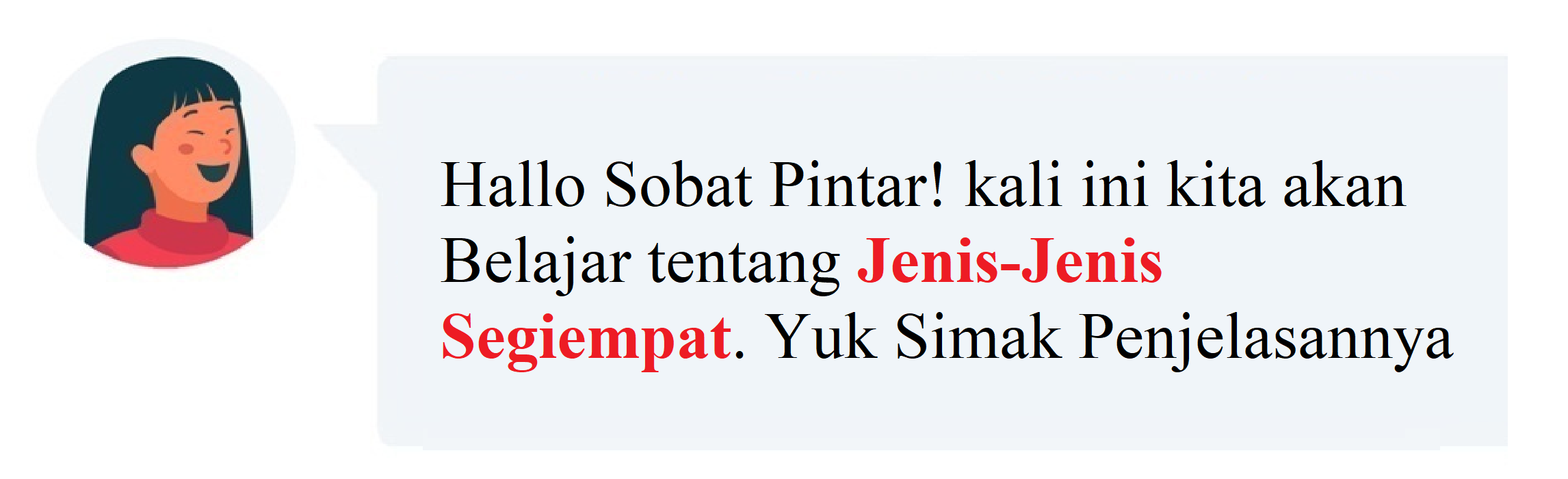 Sobat Pintar, untuk mengetahui tentang jenis-jenis segiempat, coba amati gambar bangun datar pada Tabel berikut.