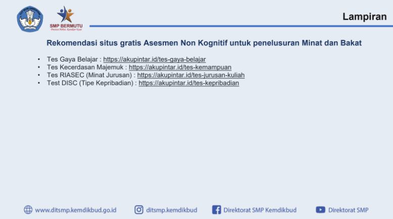 Kemendikbudristek, misalnya, merekomendasikan Aku Pintar dalam penelusuran minat dan bakat peserta didik. Rangkaian tes minat bakat yang tersedia di web maupun aplikasi Aku Pintar dapat membantu siswa menggali diri untuk menemukan passion yang selama ini mungkin masih berupa tanda tanya besar.