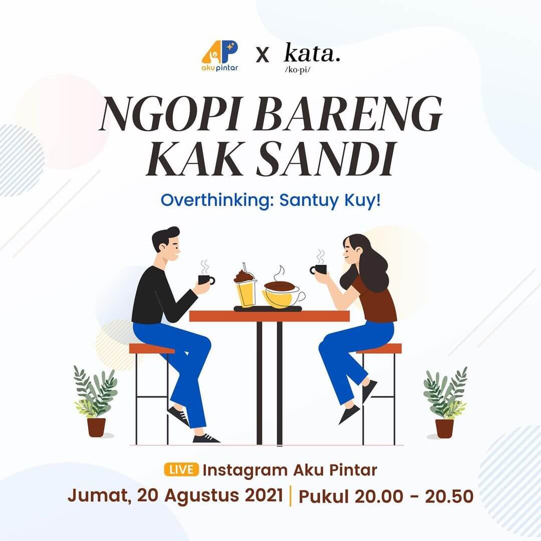 Bahkan, para praktisi dengan kompetensi konseling seperti Guru BK atau Psikolog seperti Kak Sandi dapat membantu kita keluar dari labirin overthinking – entah yang disebabkan oleh kegalauan minat bakat ataupun hal lain. Oh ya, Sobat Pintar bisa mengikuti IG Live @akupintar.id pada Jumat, 20 Agustus 2021, pukul 20.00 – 20.50 WIB. Kalau ada pertanyaan-pertanyaan yang membuatmu overthingking selama ini, bisa banget lho, disampaikan di acara Ngopi bareng Kak Sandi.