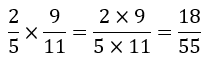 Dalam perkalian antar bilangan pecahan tidak perlu menyamakan penyebutnya. Perkalian dilakukan secara langsung antar pembilang dan antar penyebut. Perkalian dari bilangan pecahan dapat dirumuskan sebagai berikut: