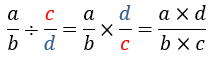 Dalam pembagian antar bilangan pecahan tidak perlu menyamakan penyebutnya. Pembagian bilangan pecahan dapat diubah menjadi bentuk perkalian bilangan pecahan. Pembagian dari bilangan pecahan dapat dirumuskan sebagai berikut: