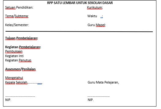 Contoh RPP 1 lembar adalah sebagai Berikut: