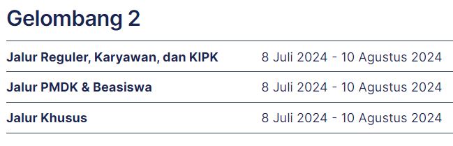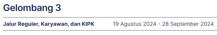 Gelombang I: 01 Januari - 30 April 2024 Gelombang II: 01 Mei - 30 Juni 2024 Gelombang III: 01 Juli - 25 Agustus 2024
