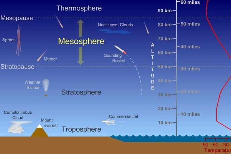 - Terdapat lapisan mesopause atau lapisan yang menjadi pembatas antara mesosfer dengan termosfer