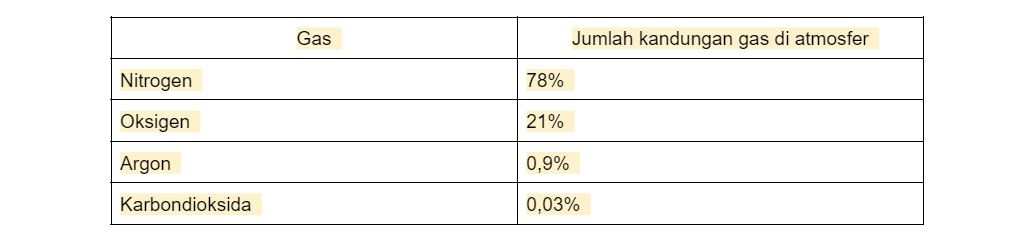 Atmosfer adalah gas yang menyelimuti bumi tempat kita tinggal. Bumi tanpa atmosfer akan mengalami perubahan suhu yang signifikan. Panas dari matahari akan terserap dengan cepat dan meningkatkan suhu permukaan secara drastis. Sebaliknya, suhu akan turun dengan cepat ketika sinar matahari tidak lagi menyentuh permukaan bumi. Nah, fungsi dasar atmosfer ini sangat penting, Sobat. Berikut ini adalah beberapa kandungan gas terbesar di atmosfer.
