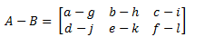 Syarat penjumlahan dan pengurangan matriks yaitu : jika terdapat dua matriks, misal matriks A dan B, yang memiliki ordo sama, maka elemen-elemen yang seletak dapat dijumlahkan atau dikurangkan. Jumlah matriks A dan matriks B dapat dinyatakan dengan A+B, sedangkan selisih matriks A dan matriks B dapat dinyatakan dengan A – B.